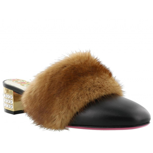 LEATHER SLIPPER WITH VISONE FUR 502872 EYR40/6390 |